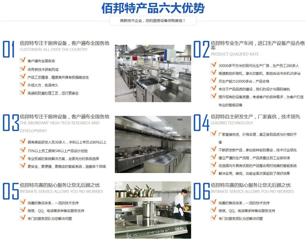 天津佰邦特廚房設備有限公司2016年創建于天津市北辰區,是一家集科研、設計、制造、銷售、安裝、維修服務為一體的專業廚房設備生產企業,是目前天津市乃至沿海地區競爭實力強的商用廚房設備企業之一。主營天津廚具,天津廚具廠,天津廚房設備,天津廚具設備,天津廚房工程、天津廚具工程,天津廚房設備公司,天津不銹鋼廚具批發,天津廚房設備廠家,天津酒店廚房設備工程,天津工廠廚房設備,天津廚房設計,天津白鐵工程,天津廚具批發,天津廚房排煙工程等配套設施。累積了豐富的實踐經驗,蓄備了一支高素質、專業化的人才隊伍。歷年來秉承著“創新、務實、求真“的企業......
